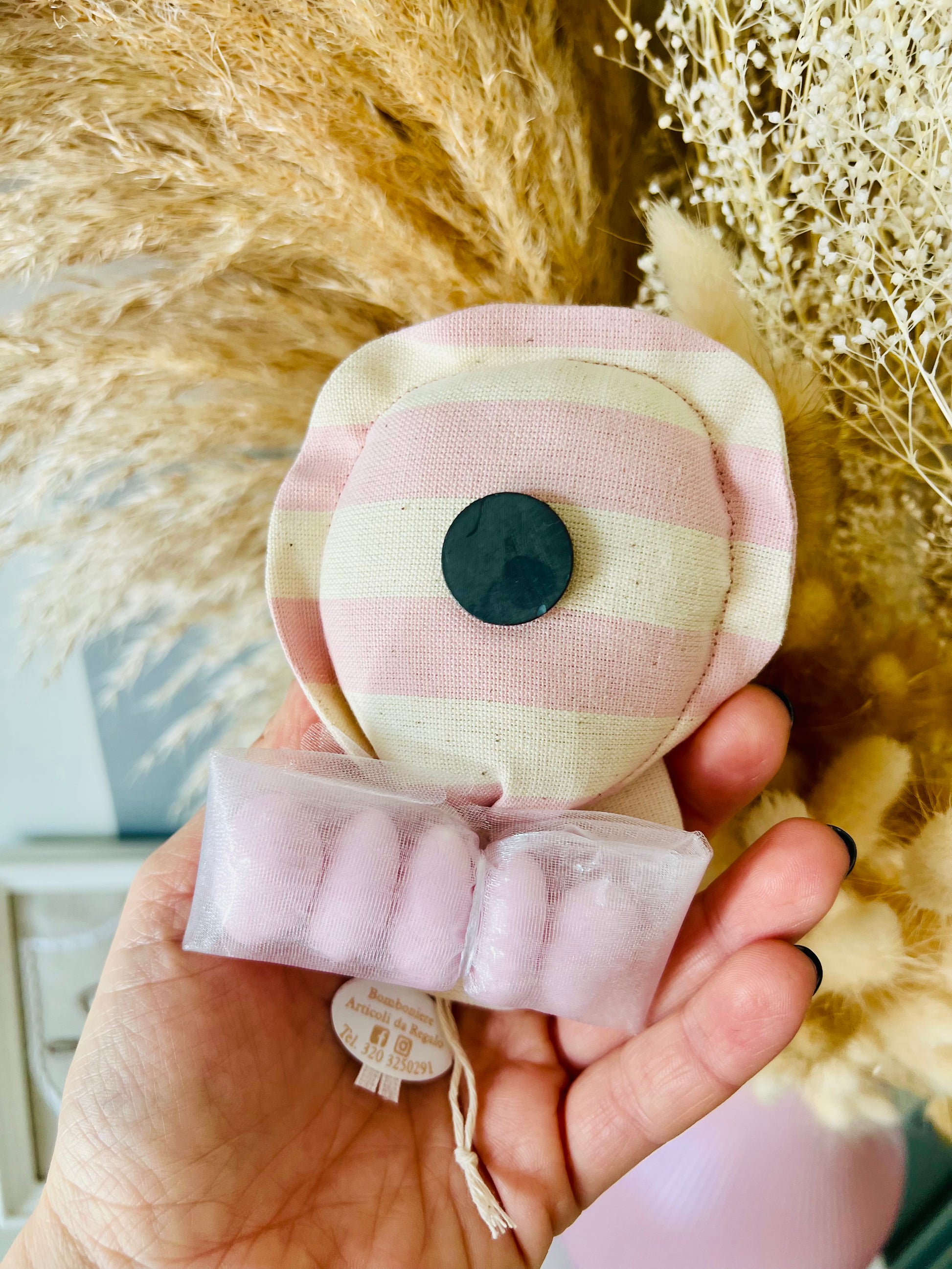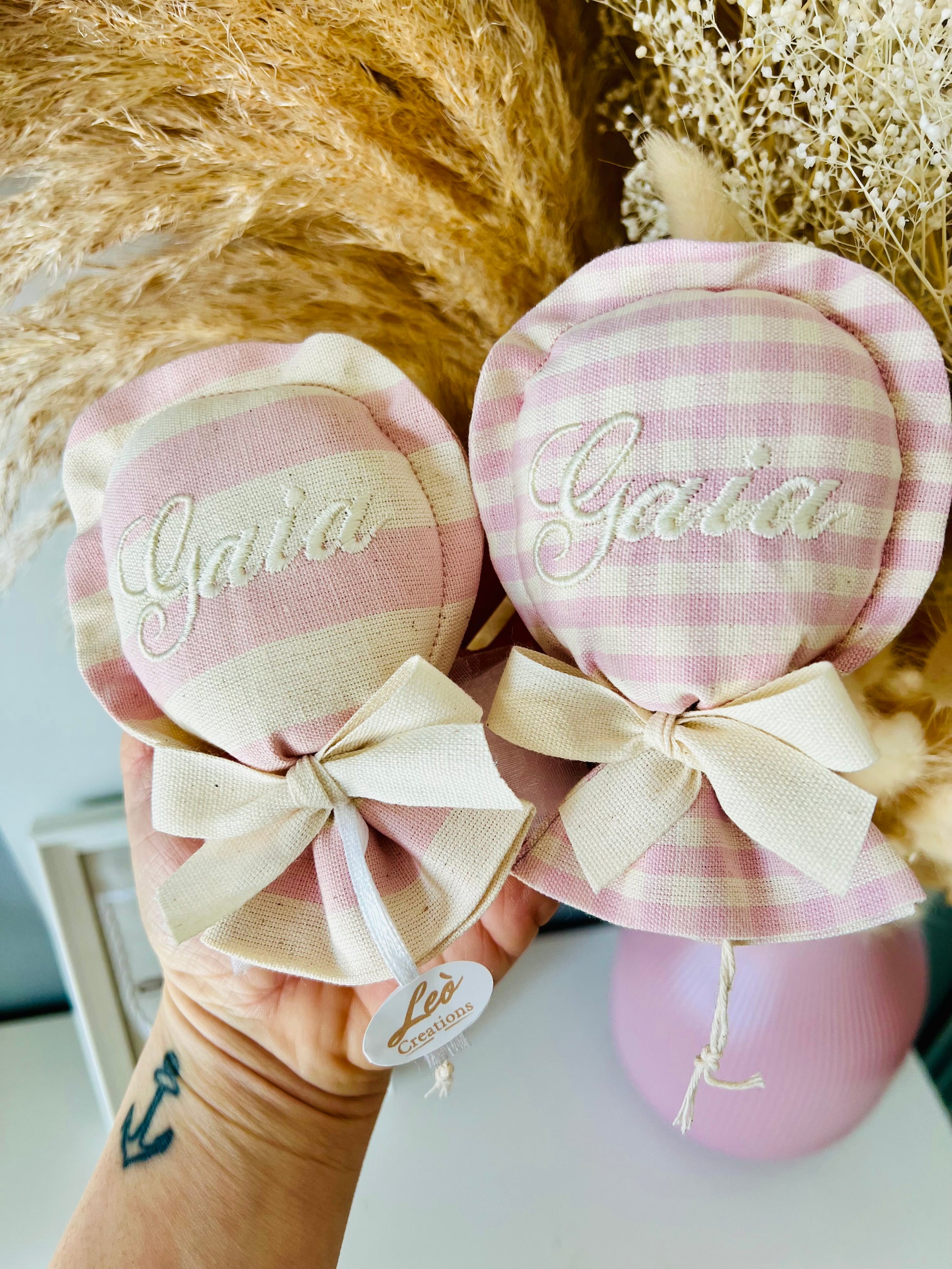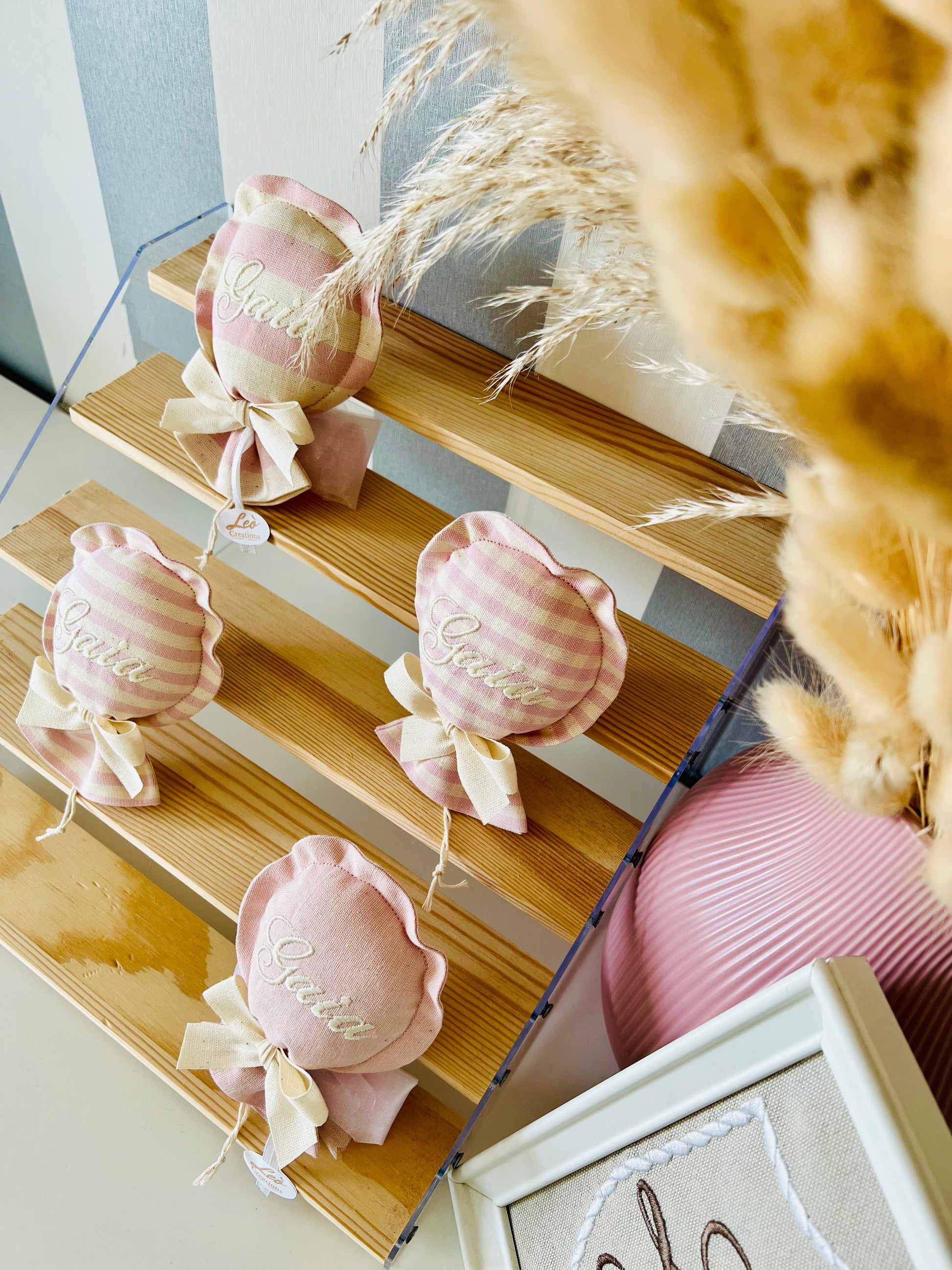 Bomboniera Palloncino porta confetti in stoffa rosa cipria.