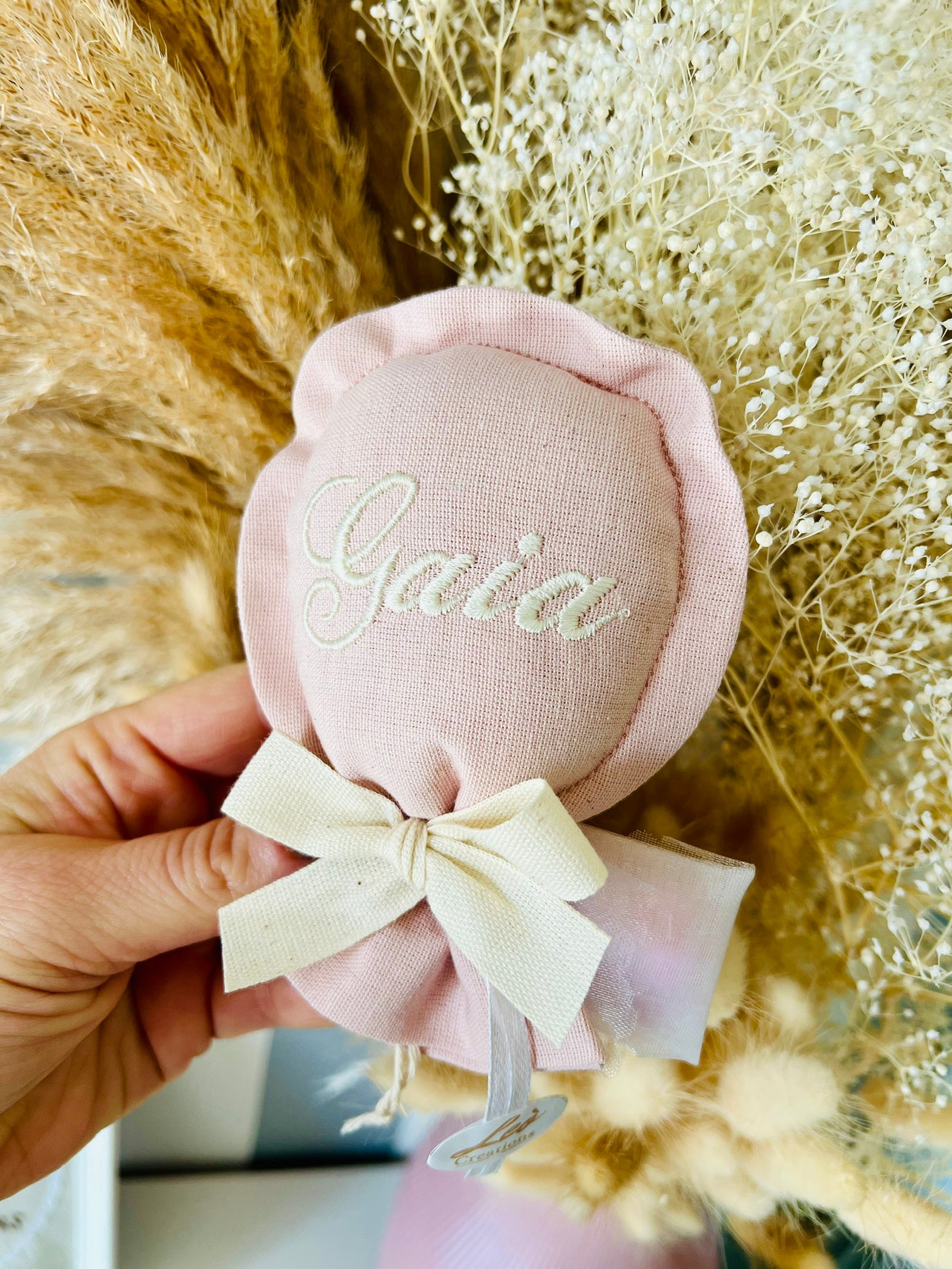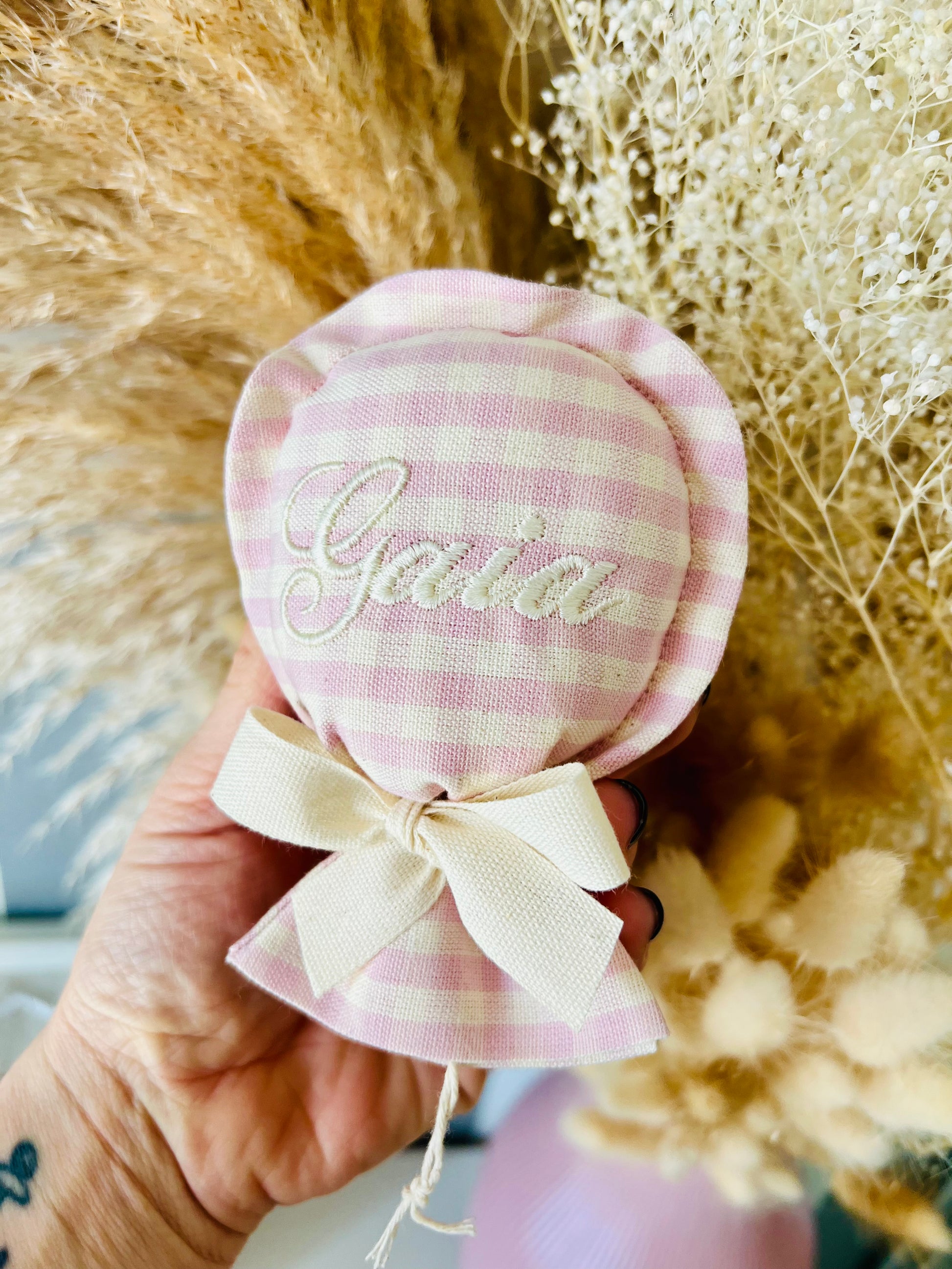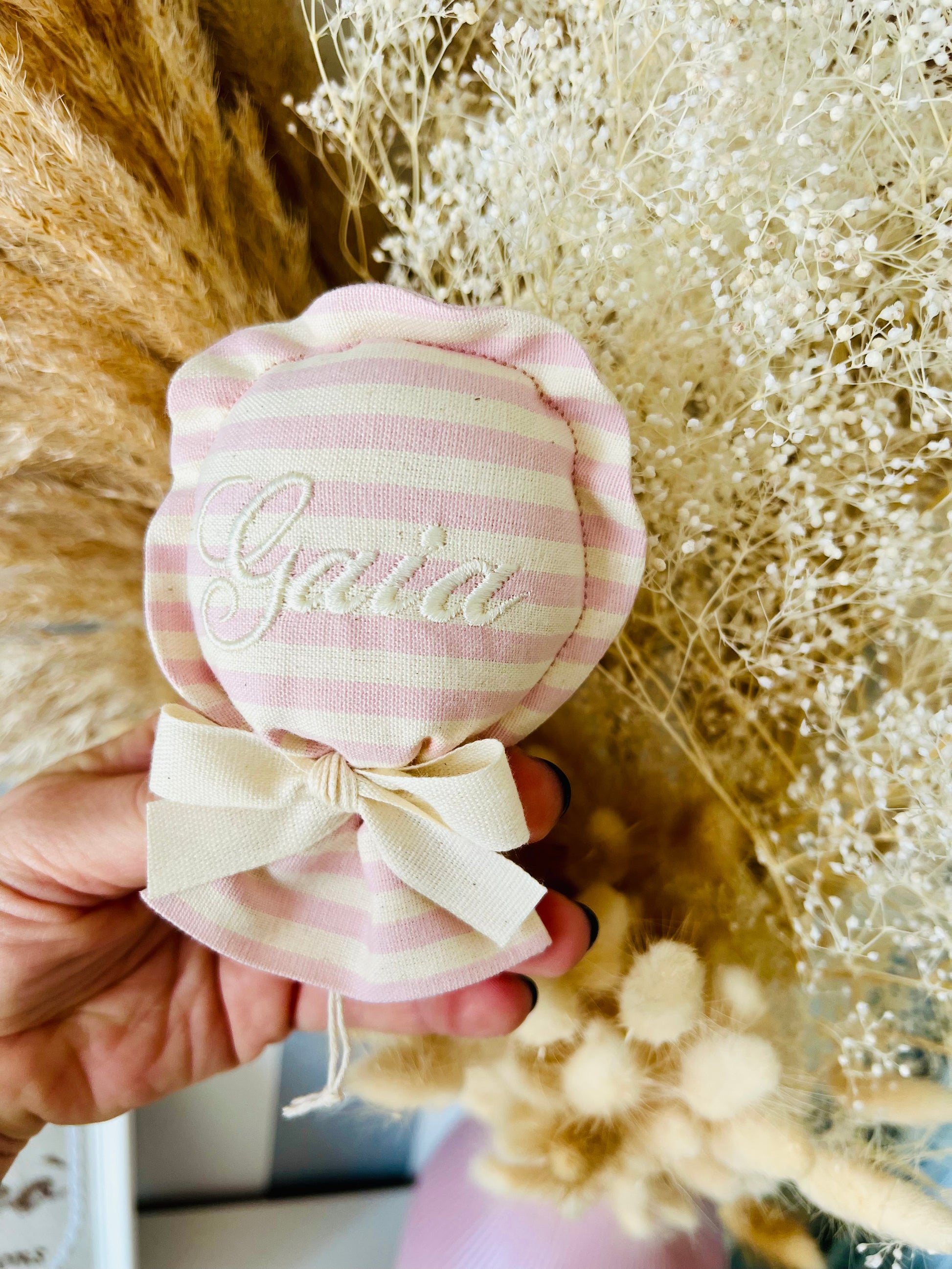 Bomboniera Palloncino porta confetti in stoffa rosa cipria.