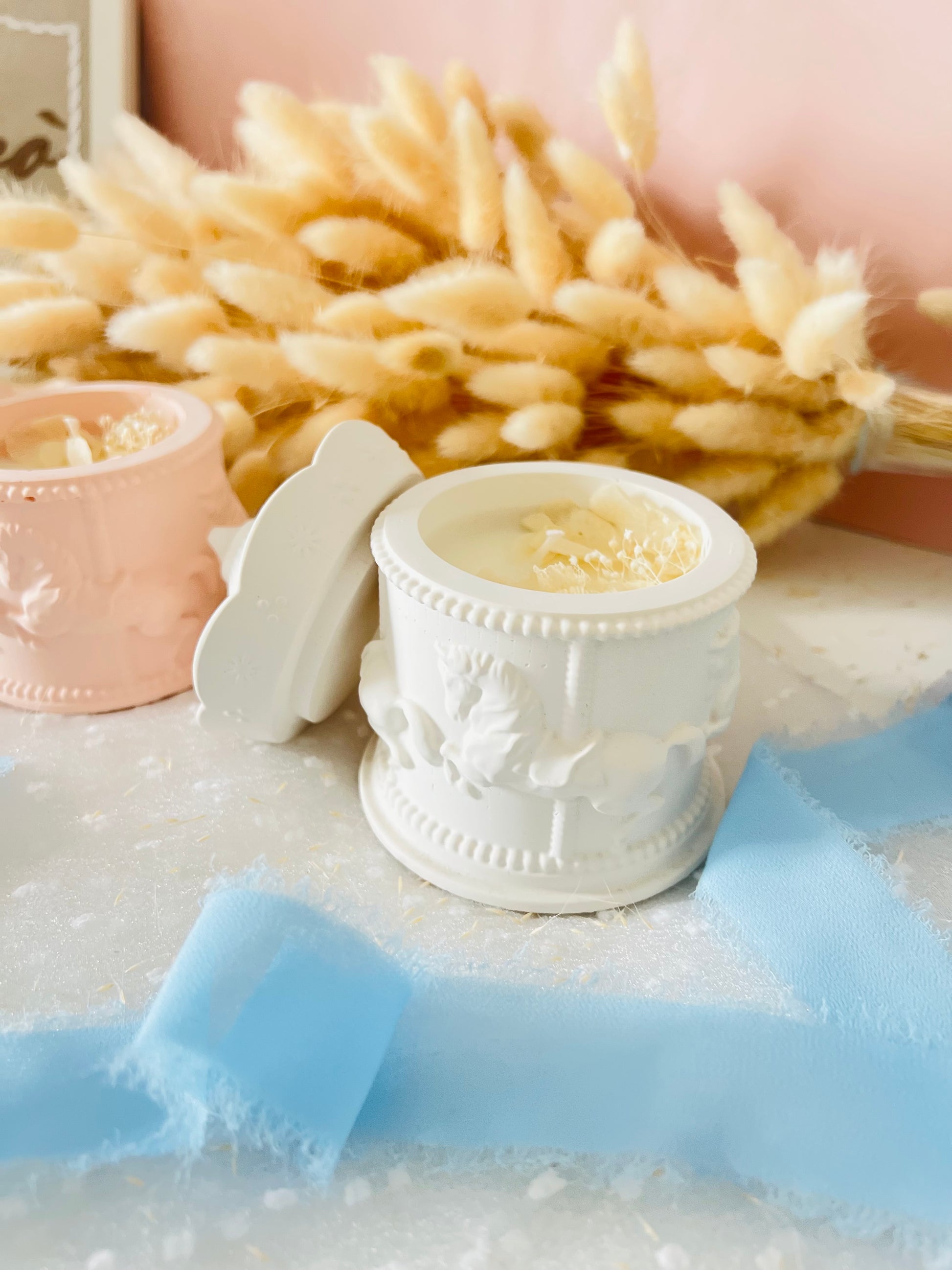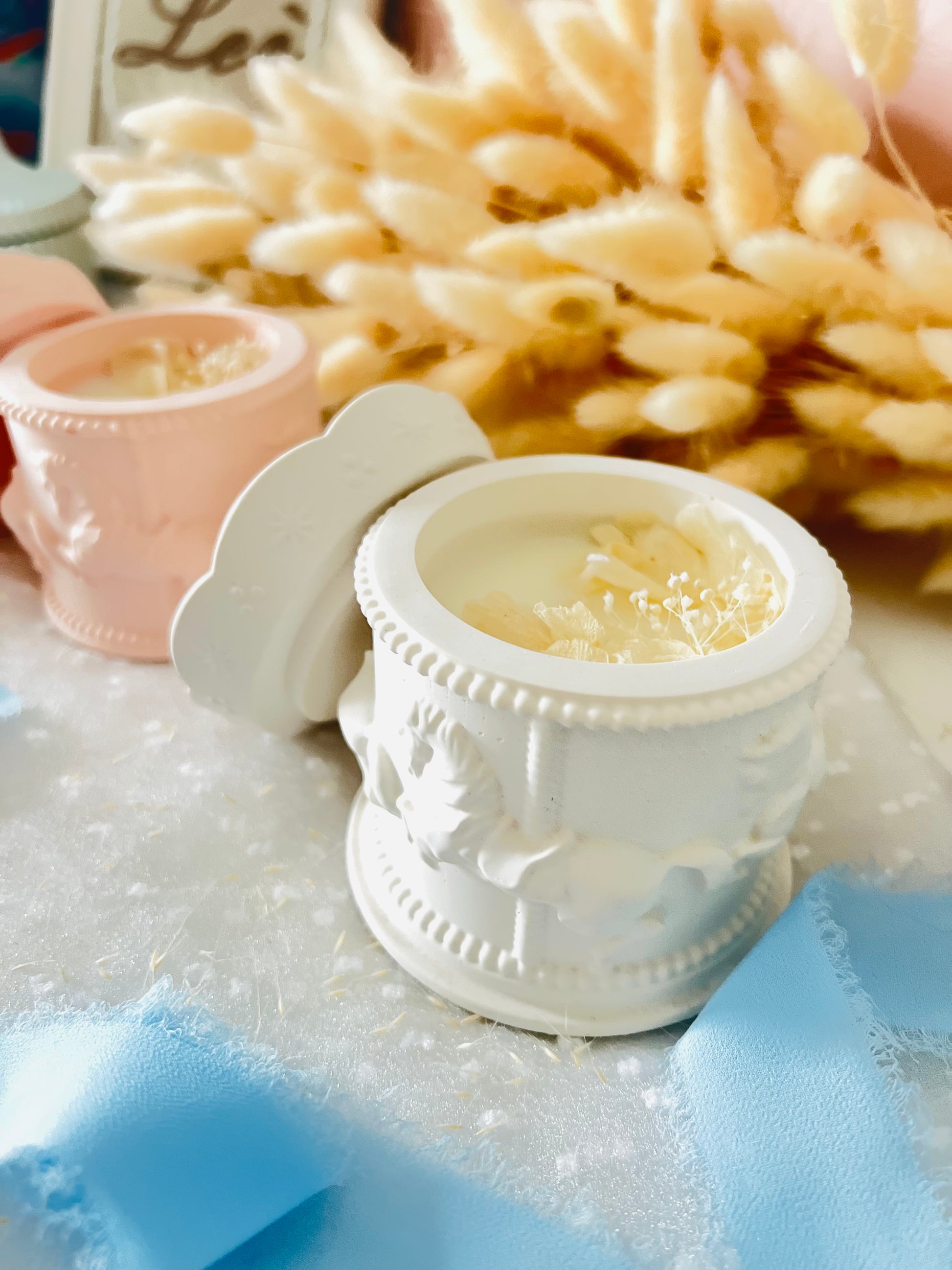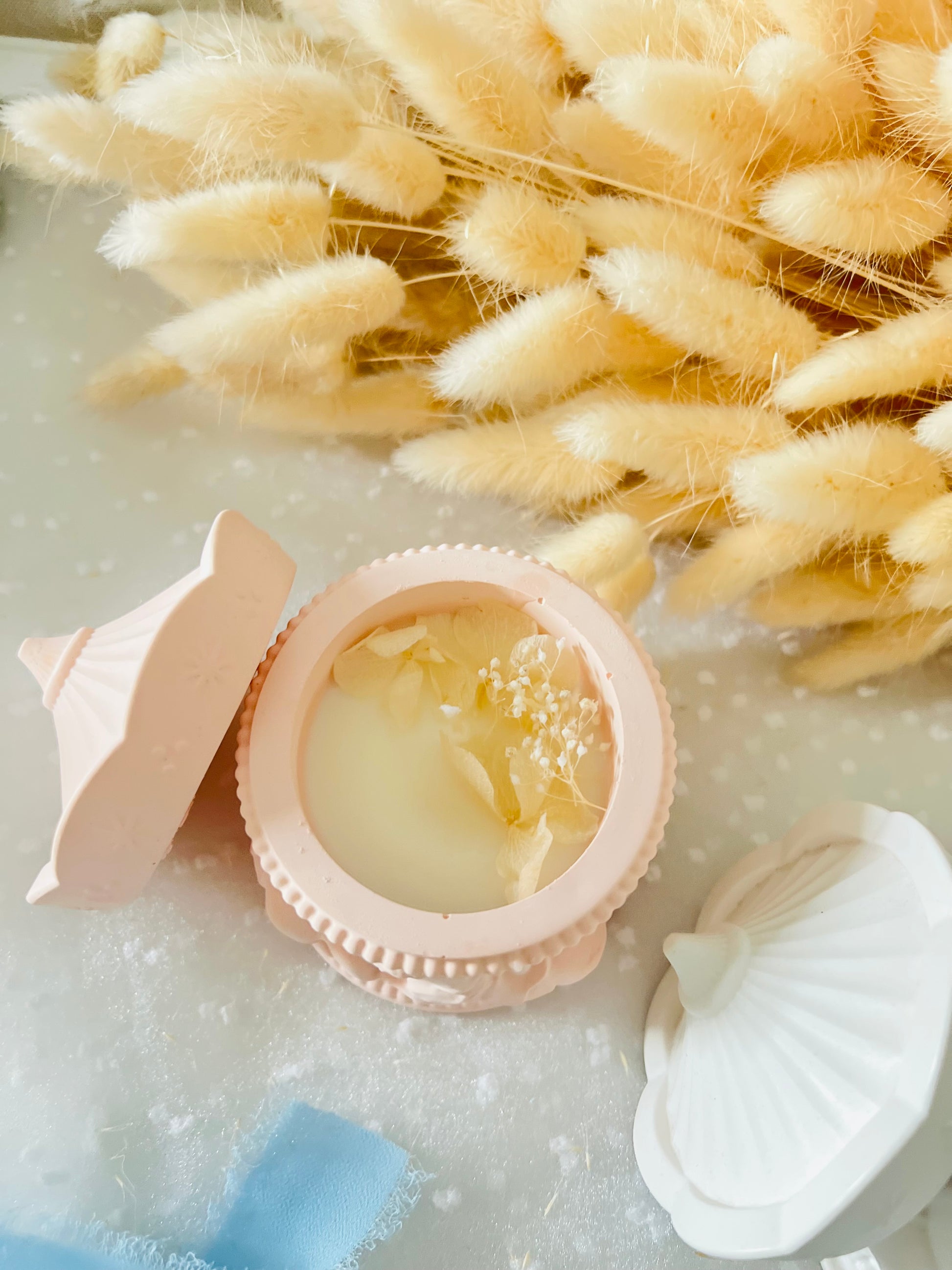Portagioie in ceramica realizzato interamente a mano, con all'interno candela profumata colata a mano e fiori essiccati.