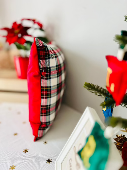 Cuscino Natalizio in Velluto e Tartan - 40 x 40 cm