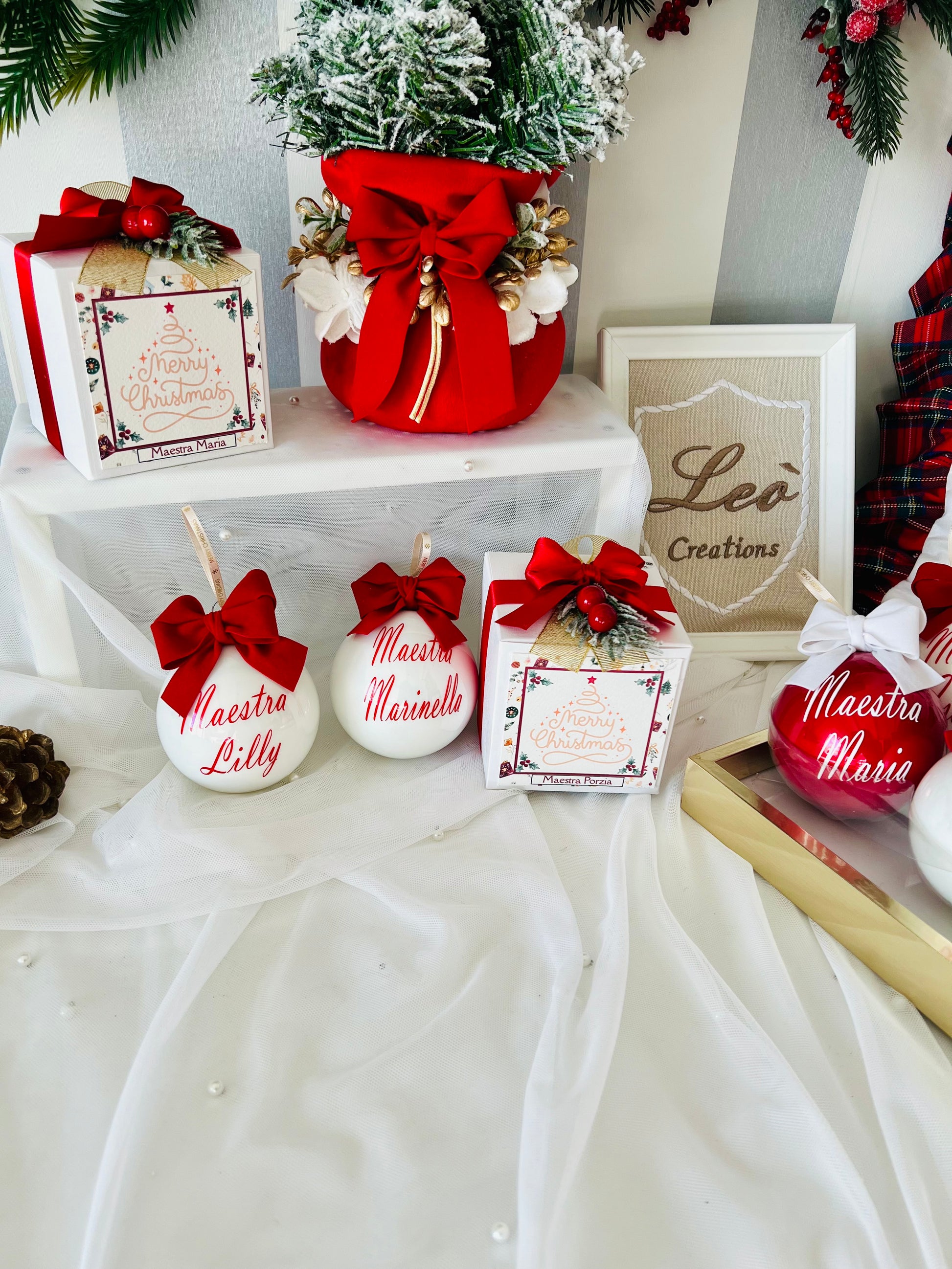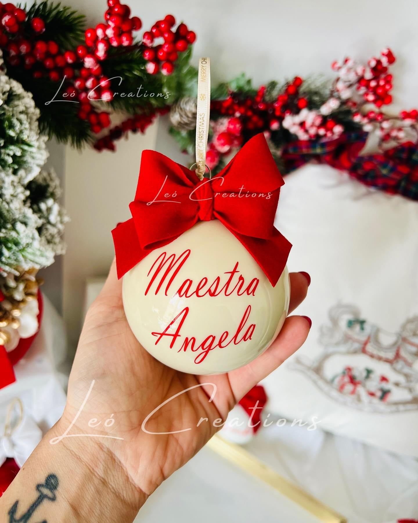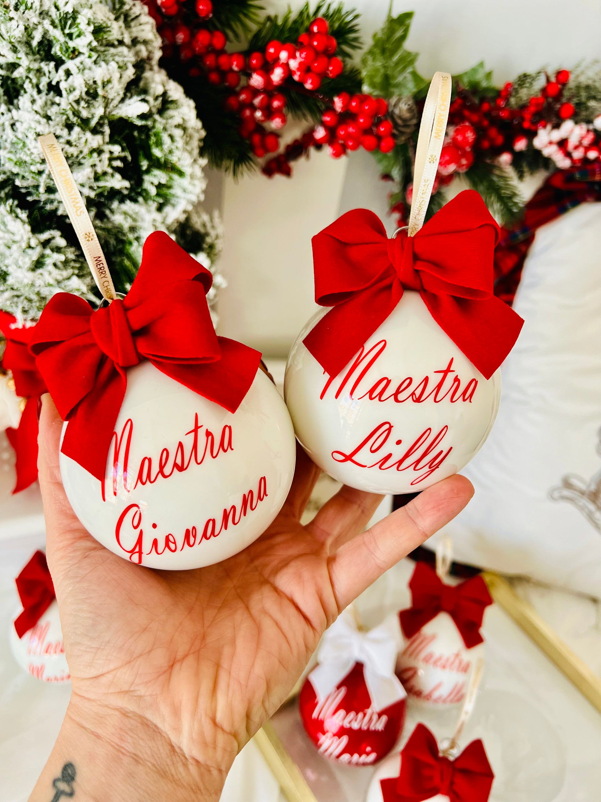Esempio scegliete sfera con doppia personalizzazione: nome Maestra Angela-sul retro: Classe 1C
