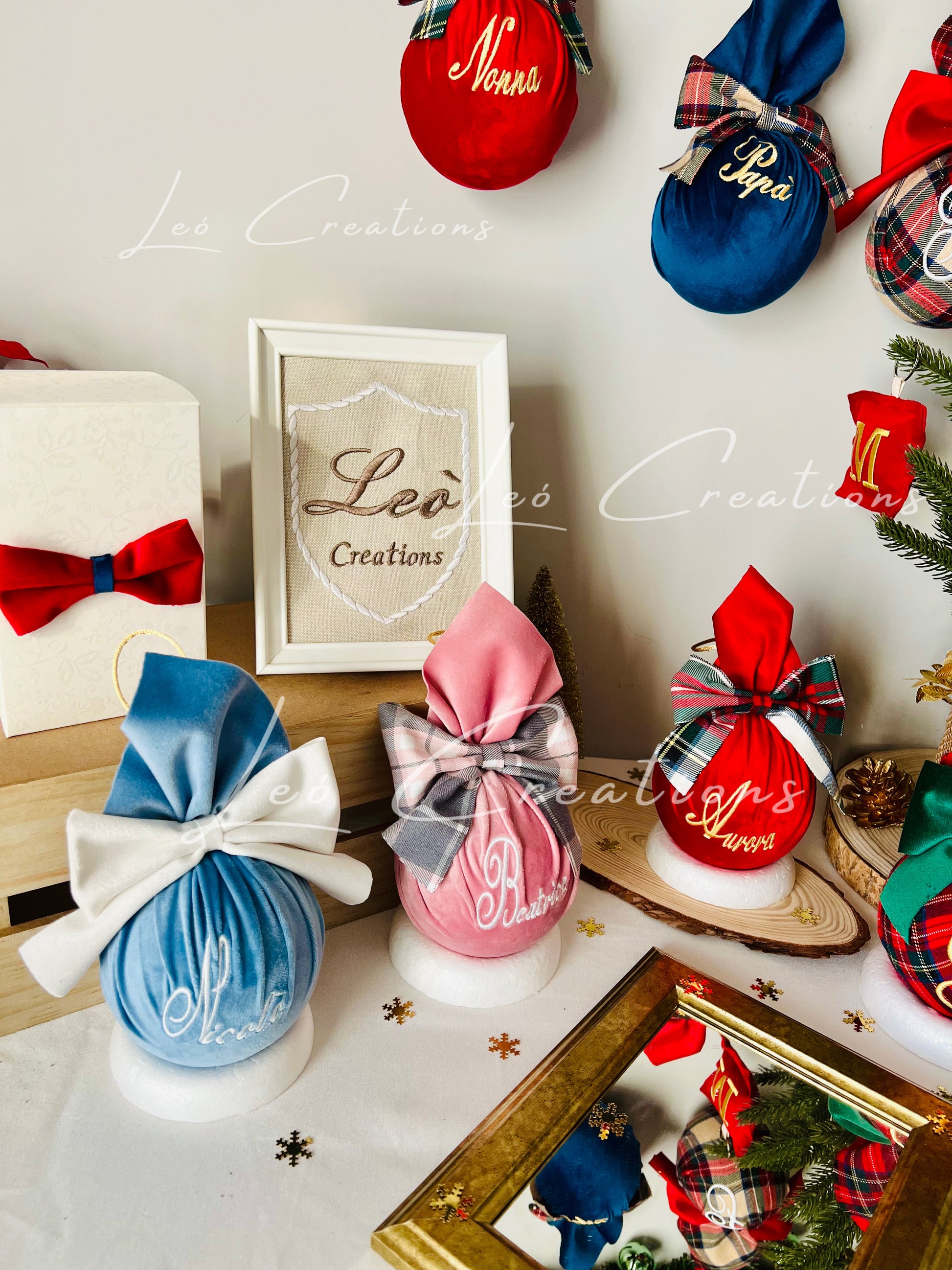 Sfere Natalizie in Velluto con Ricamo Personalizzato