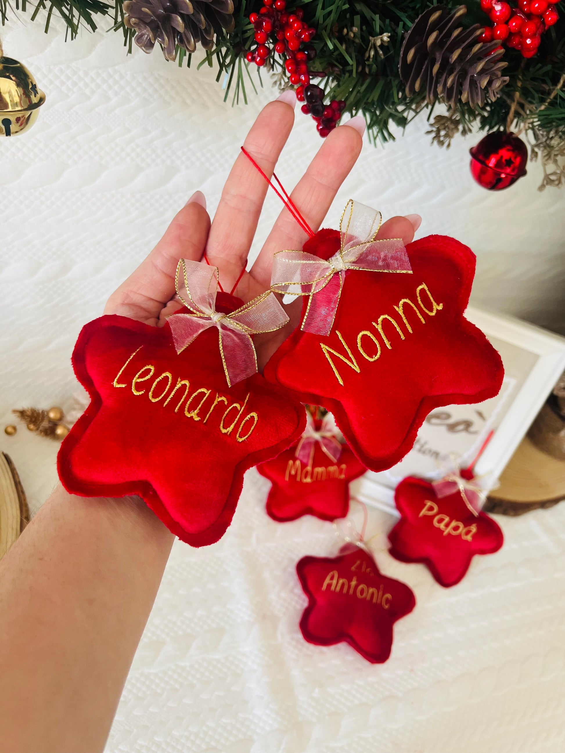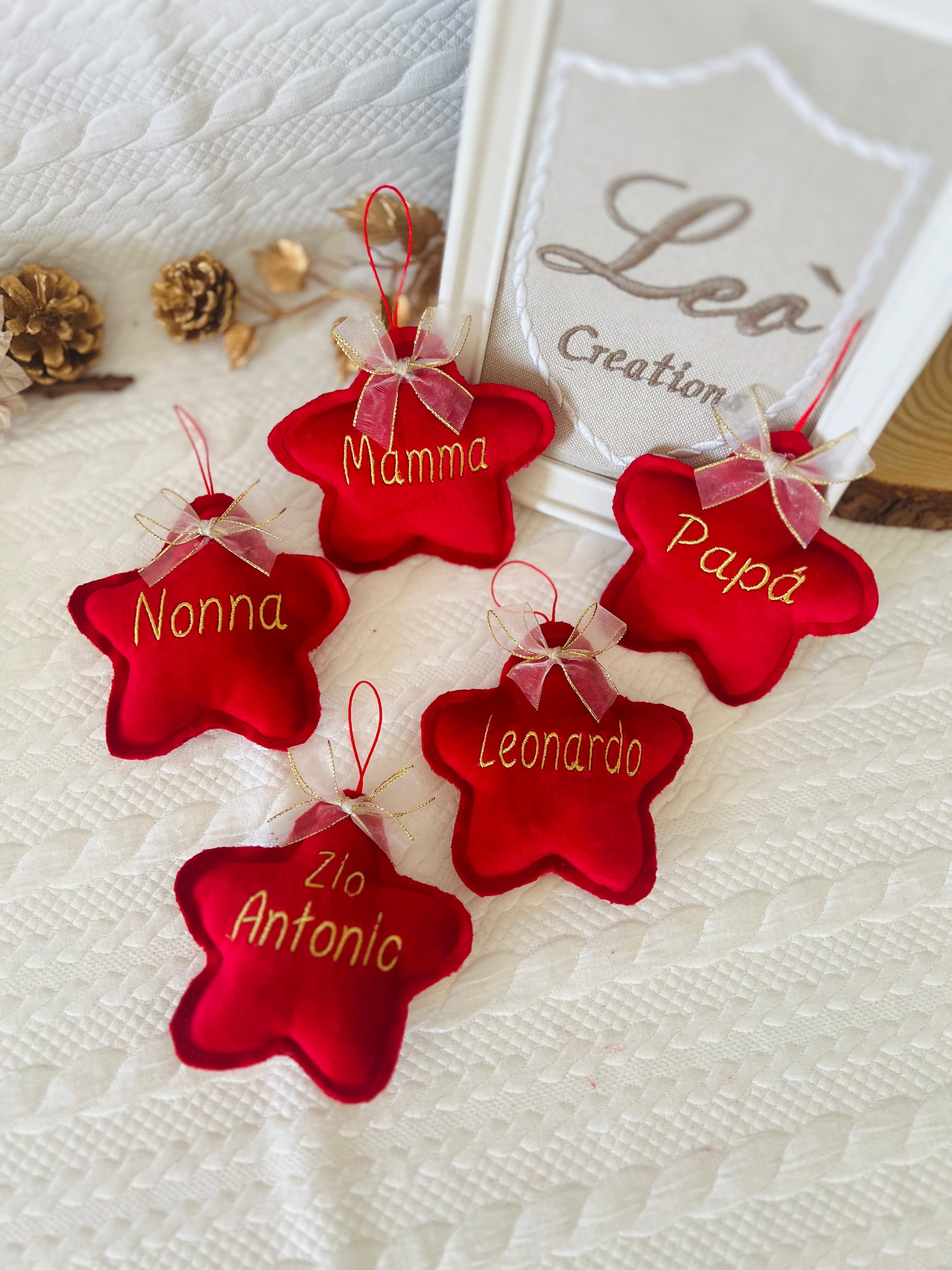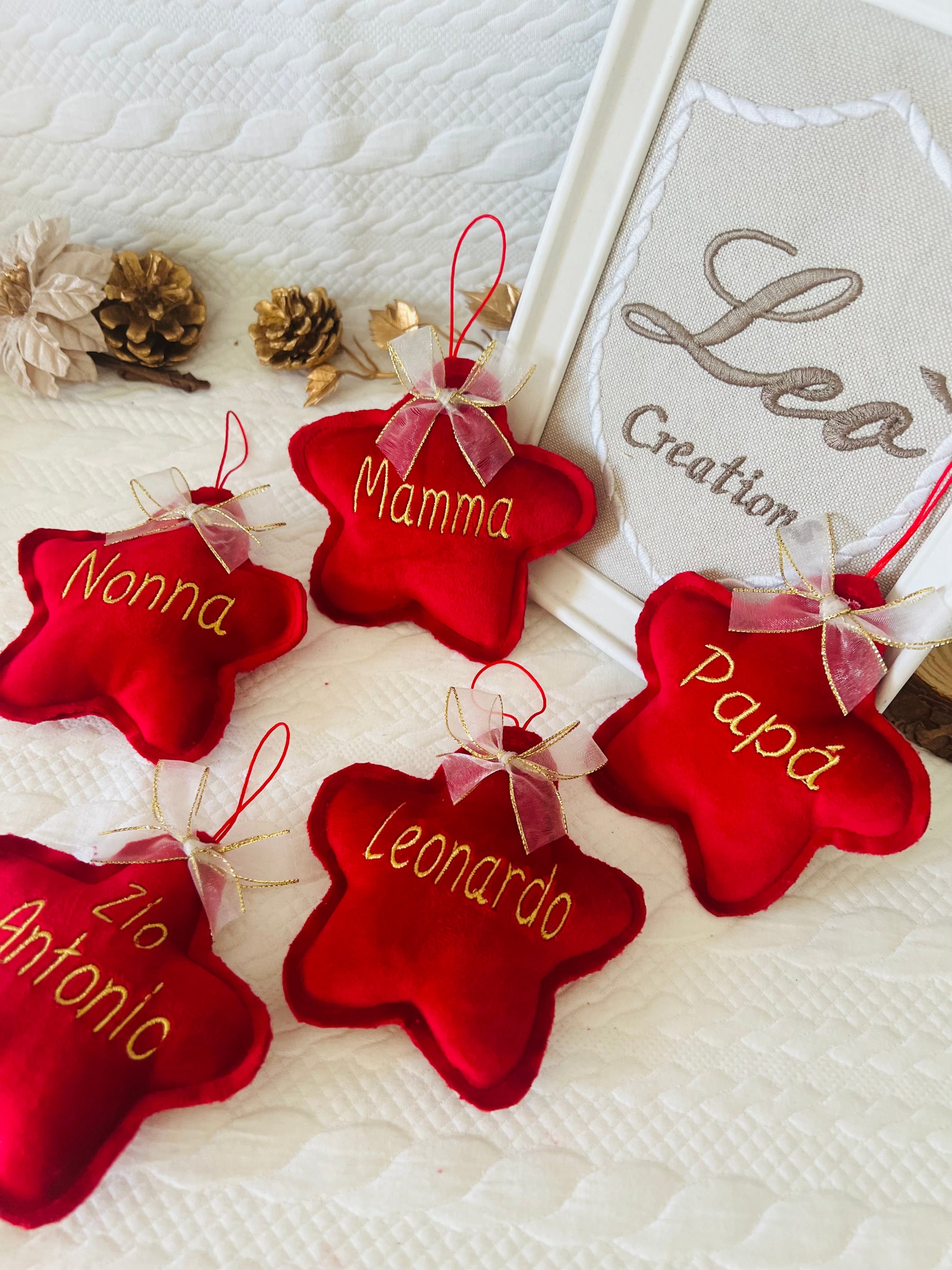 Realizzate a mano con cura e amore, pensate per aggiungere un tocco speciale a ogni occasione. Ogni stellina è personalizzata con il nome ricamato, rendendola un piccolo tesoro unico nel suo genere.